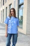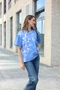 Модель. Футболка оверсайз. Обработка горловины: планка из основной ткани. Обработка среза горловины спинки: киперной лентой.