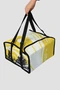 Модель. Сумка объемная, прямоугольной формы. В качестве подклада используется фольгированный изолон. Ручки выполнены из стропы стандартных цветов. В качестве застежки используется липа стандартных цветов. Сумка обработана по краю окантовочной лентой стандартных цветов.