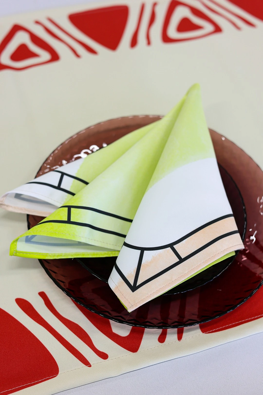 Особенности изготовления: Изображение наносится методом сублимации на всю поверхность салфетки. Изображение на скатерти размещается в соответствии с лекалом.