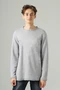 Модель. Толстовка прямого силуэта, без молнии с длинными рукавами и опущенной линией плеч. Низ толстовки и рукавов, а также горловина с имитацией необработанного края. Толстовка без капюшона и карманов.