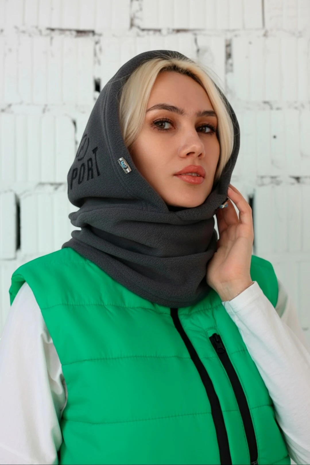 Модель. Капор состоит из капюшона и воротника стойки. Капюшон с фиксаторами на резинке.