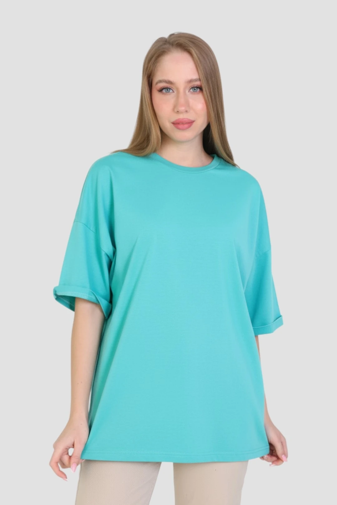 Модель. Футболка оверсайз. Обработка горловины - рибана из основной ткани. Низ изделия и рукава подгибаются внутрь. Форма ворота О-образная.
