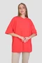 Модель. Футболка оверсайз. Обработка горловины - рибана из основной ткани. Низ изделия и рукава подгибаются внутрь. Форма ворота О-образная.
