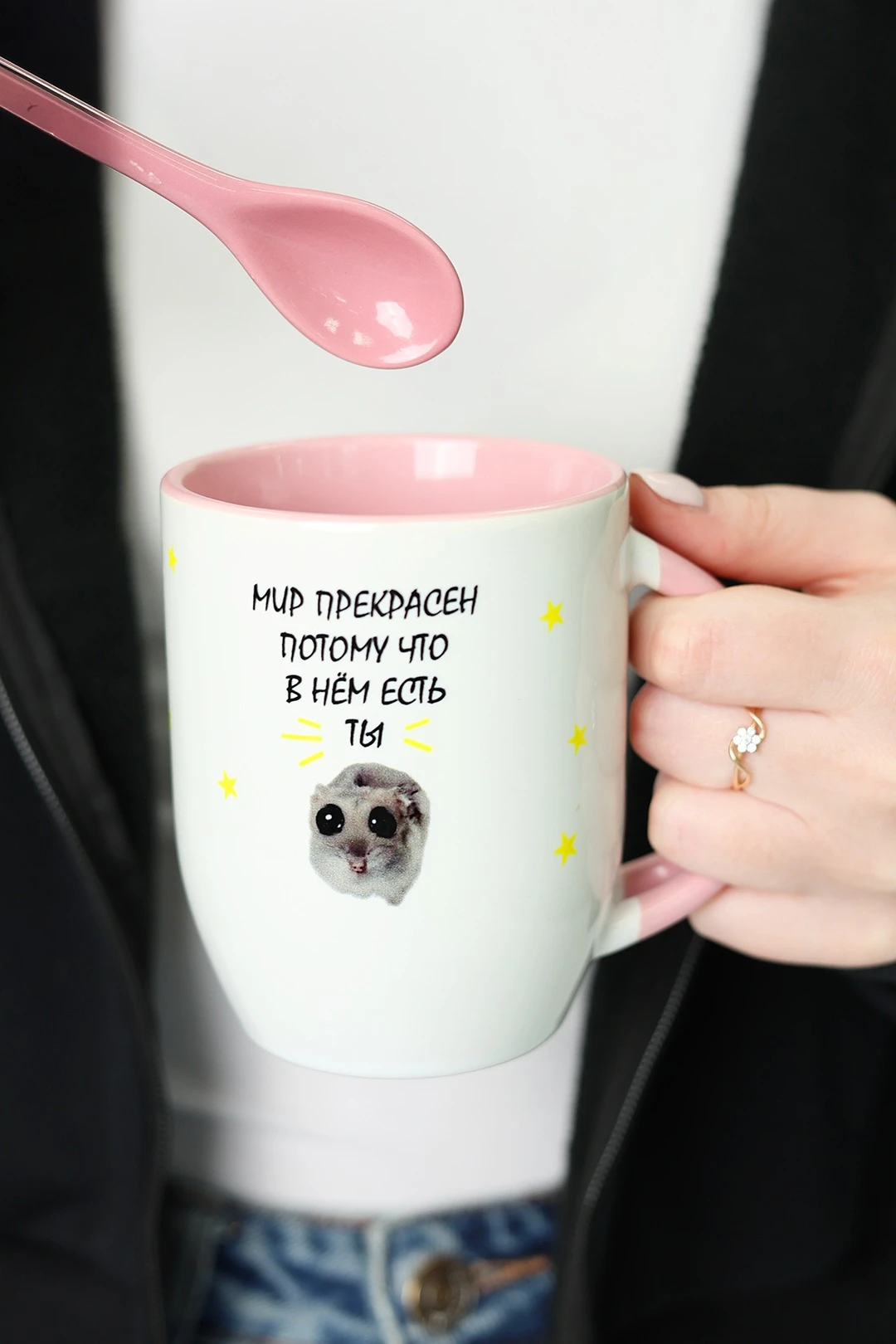 Кружка, имеющая в своей ручке особые отверстия, которые предназначены для хранения ложки, это необычный и оттого весьма интересный сувенир. Наружная поверхность кружки выполнена в белом цвете, в то время, как ее внутренняя поверхность, а также ручка и ложка имеют собственный единый цвет. Используя сублимационную технологию печати, на кружку можно нанести разнообразные изображения, способные сделать из нее отличный рекламный носитель.
