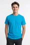 Модель. Прямой силуэт. Рукав короткий. Без боковых швов и разрезов по низу изделия. Обработка горловины эластичной рибаной (специальная тканая резинка) в цвет футболки. Форма ворота О-образная.