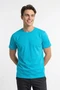 Модель. Прямой силуэт. Рукав короткий. Без боковых швов и разрезов по низу изделия. Обработка горловины эластичной рибаной (специальная тканая резинка) в цвет футболки. Форма ворота О-образная.
