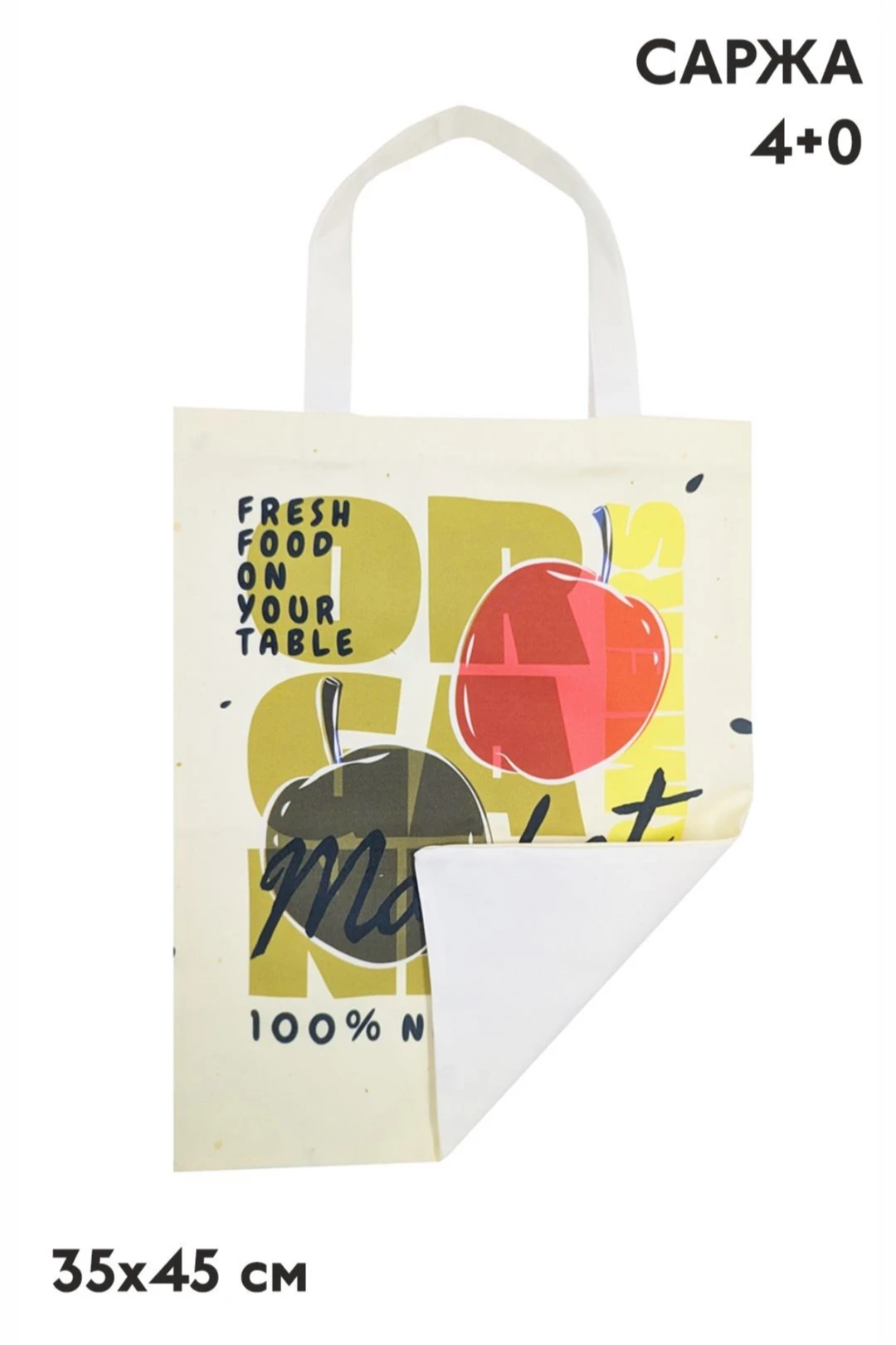 Печать с одной стороны: полноцветная печать осуществляется на хб материале с одной стороны сумки в процессе производства, ручки и вторая сторона выполнены из основного материала без печати.