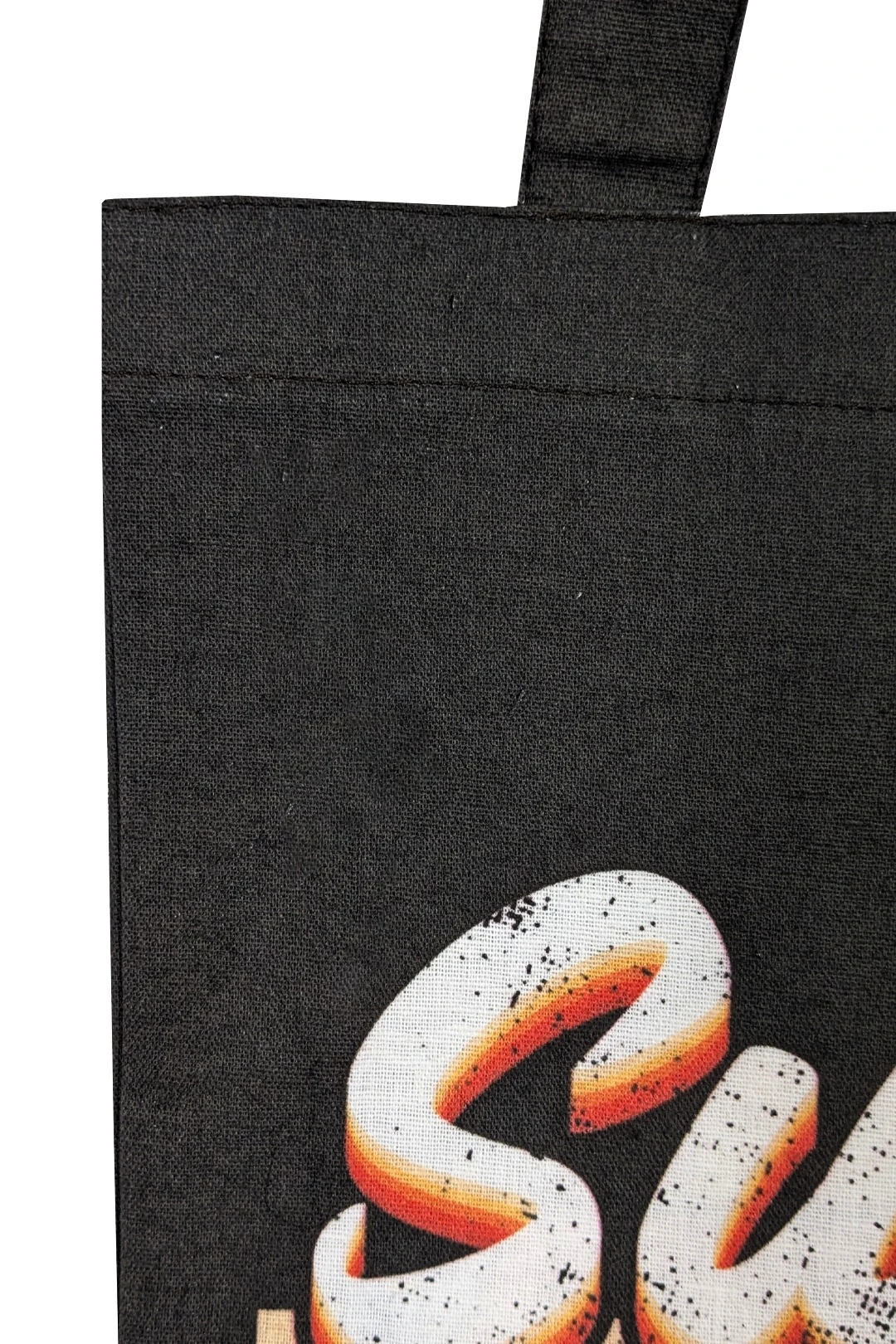 Печать с двух сторон: полноцветная печать осуществляется на хб материале с двух сторон по всей поверхности сумки, ручки сумки запечатываются фоновой заливкой без элементов дизайна.