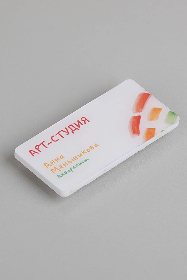 Бейдж с акриловой заливкой выглядит оригинально и выделяет сотрудников вашей компании среди прочей публики. Пластиковый бейдж, который предлагает "Инари", представителен, прочен и надежно крепится на одежде магнитом. Закажите бейджи оптом в компании «Инари», и мы оправдаем ваш выбор.