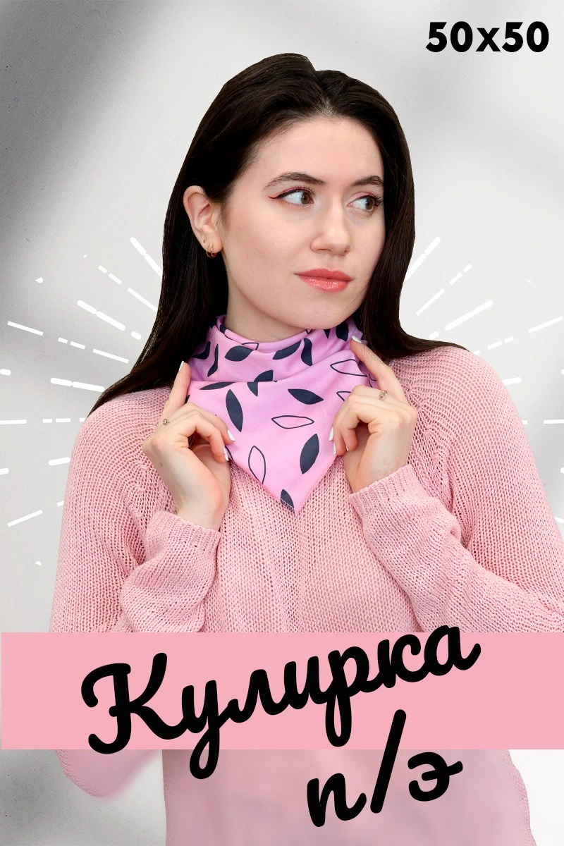 Модель: Бандана квадратной формы. Края платка обработаны оверлоком.