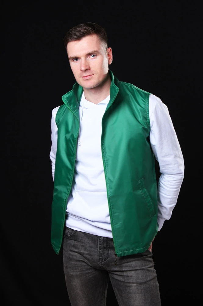 Модель: Жилет Брайт унисекс однотонный, с прямым силуэтом, без капюшона. Два прорезных кармана в листочку, без молнии. Жилет застегивается на молнию стандартных цветов. Молния разъемная. Жилет без подклада.
