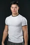 Модель. Прямой силуэт. Рукав короткий. К нижней части рукава пришивается декоративная вставка в цвет футболки или вставка стандартных цветов. Футболка имеет боковые швы без разрезов по низу изделия. Обработка горловины руликом (кантом) из основной ткани в цвет футболки или других стандартных цветов. Форма ворота О-образная.