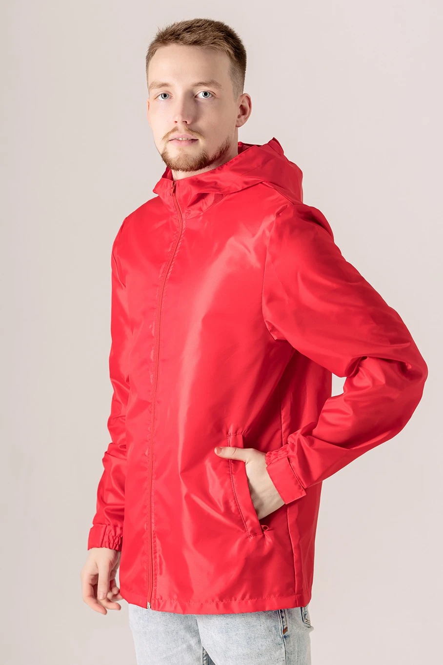 Модель. Ветровка Рэйн прямого силуэта с длинным рукавом с манжетой на резинке с липой. Ветровка на молнии без подклада. Капюшон пришивной, на верхней части у края капюшона пришита резинка для удобства. Два прорезных кармана в листочку на молнии. Низ изделия прошит в подгибку, без фиксаторов.