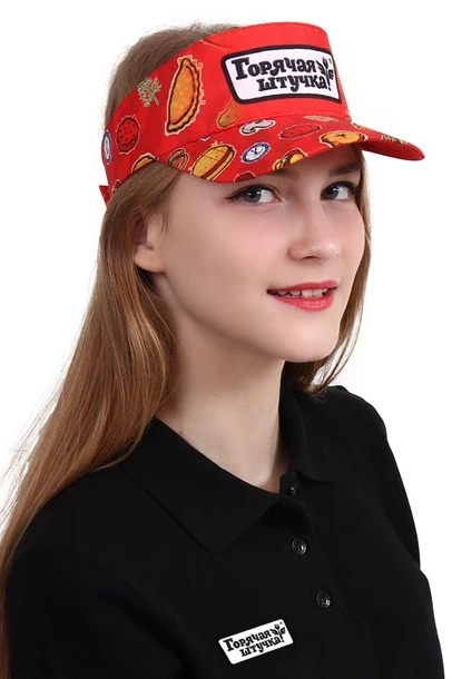 Козырек Софт "Горячая штучка" – яркий и красочный пример того, как обычный козырек на липучке, благодаря полноцветной печати, превращается в стильный и узнаваемый элемент корпоративного имиджа. Козырьки от «Инари» востребованы в сфере питания, обслуживания, в рекламных агентствах.