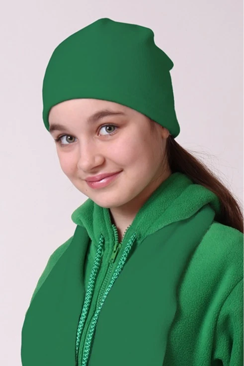 Шапка Вайт флисовая однослойная детская, однотонная зеленая