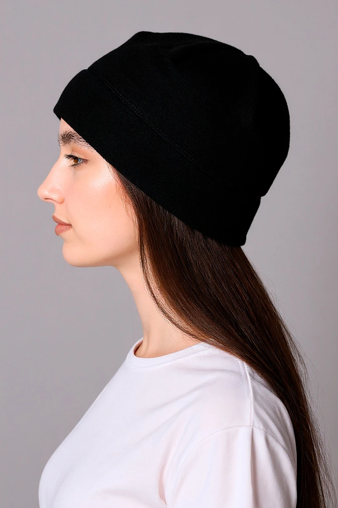 Шапка Вайт флисовая однослойная взрослая, однотонная черная