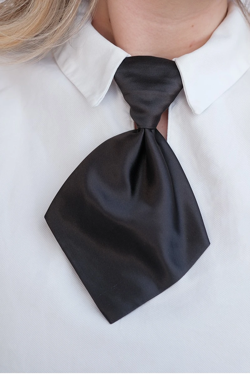 Модель: Галстук женский. Креплением служит резинка белого или черного цветов, шириной 1 см, без регуляторов.