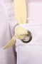 Модель: Фартук трапециевидной формы. Состоит из двух деталей, которые скрепляются между собой с помощью верхних и боковых завязок. Верхние завязки фиксируются на передней части с помощью никелированных люверсов диаметром 16 мм. Фартук имеет карман 32х17 см, который разделен на два отсека. Фартук по периметру обработан швом вподгибку. Завязки выполнены из основной ткани.