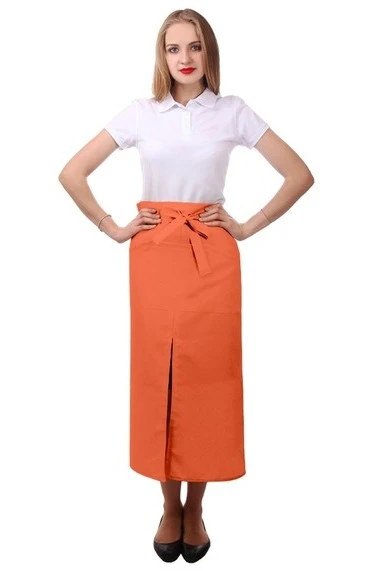 Фартук Шеф поясной с одним карманом, однотонный оранжевый