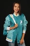 Модель. Прямой силуэт, без капюшона, без подклада. Длинные рукава с манжетами из сублимационной ткани сандвич браш. Низ бомбера и воротник с закругленными углами также выполнены из сублимационной ткани сандвич браш. Вариант застежки бомбера на выбор: на семь металлических кнопок или на молнию. Два боковых кармана в листочку без молнии.