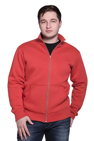 Модель. Прямой силуэт. Толстовка на молнии. Длинные рукава. Низ толстовки и рукавов, а также горловина обработаны тканью кашкорсе (специальная тканая резинка) в цвет толстовки. Толстовка без капюшона. Два раздельных кармана по типу кенгуру. Для большего удобства при открывании и закрывании на молнии установлены пуллеры.
