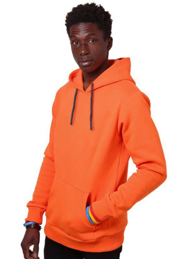 Модель. Прямой силуэт. Толстовка без молнии. Длинные рукава. Низ толстовки и рукавов обработаны тканью кашкорсе (специальная тканая резинка) в цвет толстовки. Один общий карман по типу кенгуру. Капюшон пришивной двухслойный, внутренний слой из однотонной кулирной глади с лайкрой стандартных цветов на выбор. У края капюшона продет плоский шнур стандартных цветов.