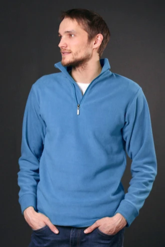 Модель. Прямой силуэт. Воротник стойка. Молния до груди толстовки. Длинные рукава с манжетой из основного материала. Толстовка без капюшона. Без карманов. Возможно бесплатное комбинирование деталей разных цветов (например, рукава могут отличаться по цвету от остальных деталей).