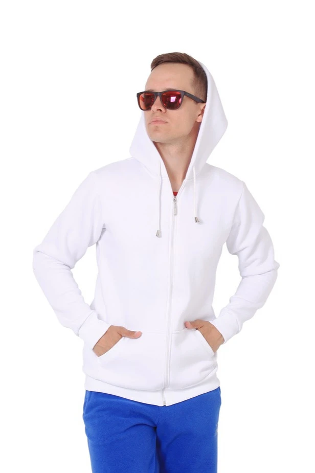 Модель. Балахон Рик прямого силуэта на молнии. Толстовка с длинными рукавами. По низу толстовки и рукавов прошита специальная тканная резинка кашкорсе в цвет балахона. Два раздельных кармана по типу кенгуру. Капюшон пришивной двухслойный, внутренний слой из однотонной кулирной глади с лайкрой стандартных цветов на выбор. У края капюшона продет плоский шнур стандартных цветов.