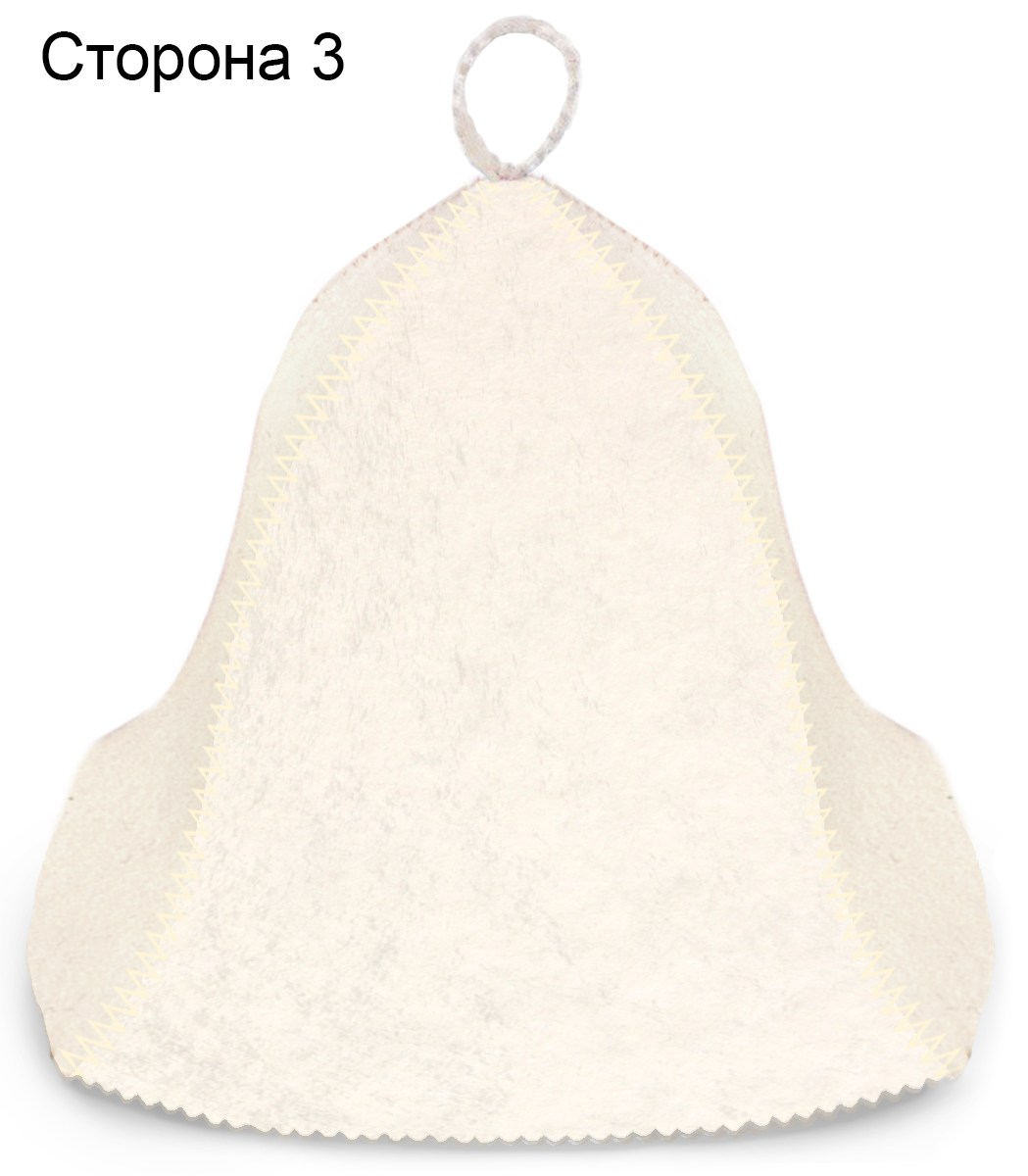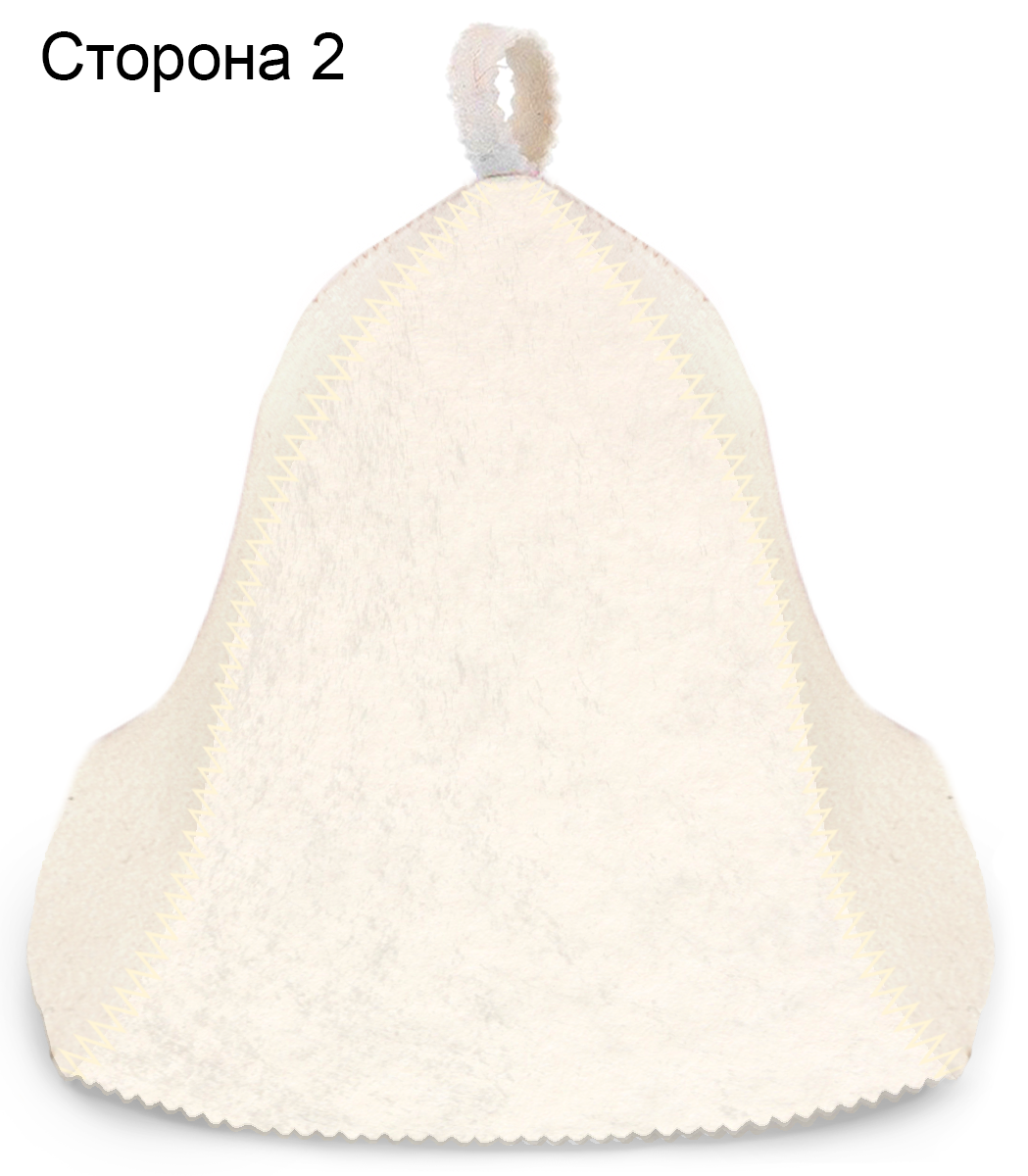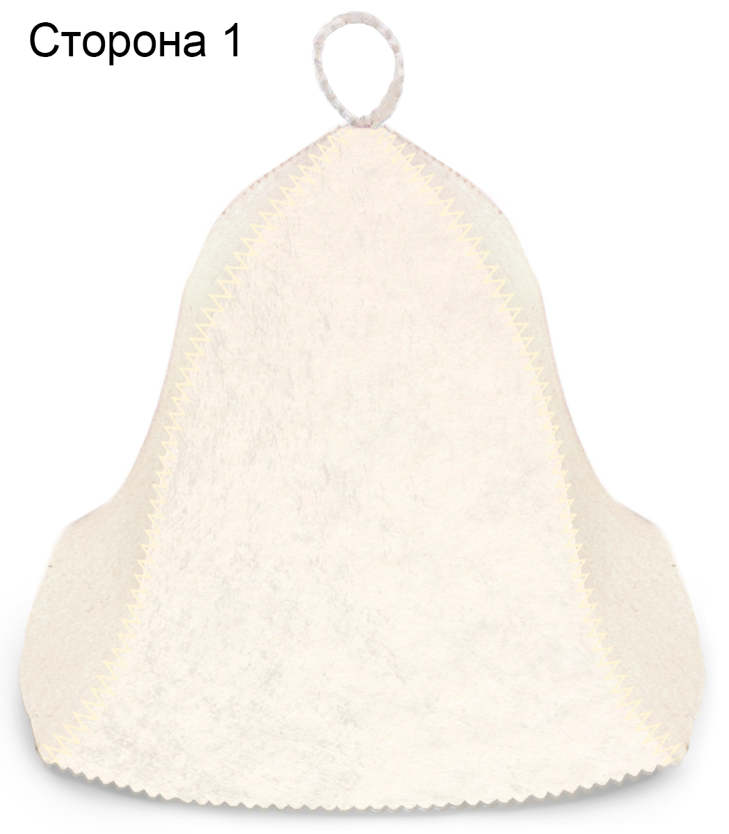 Обработка: Швы шапки выполнены зигзагом белой нитью. Края шапки и петли обрабатываются фигурной резкой зигзагом.