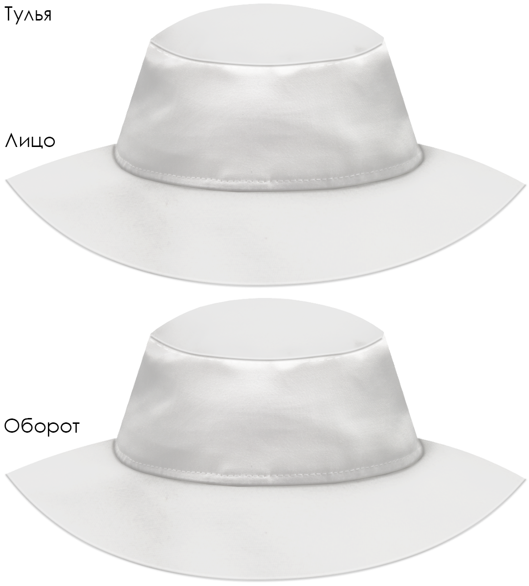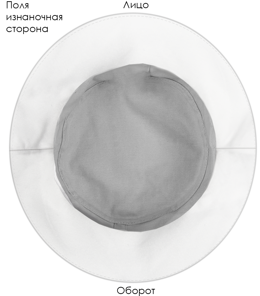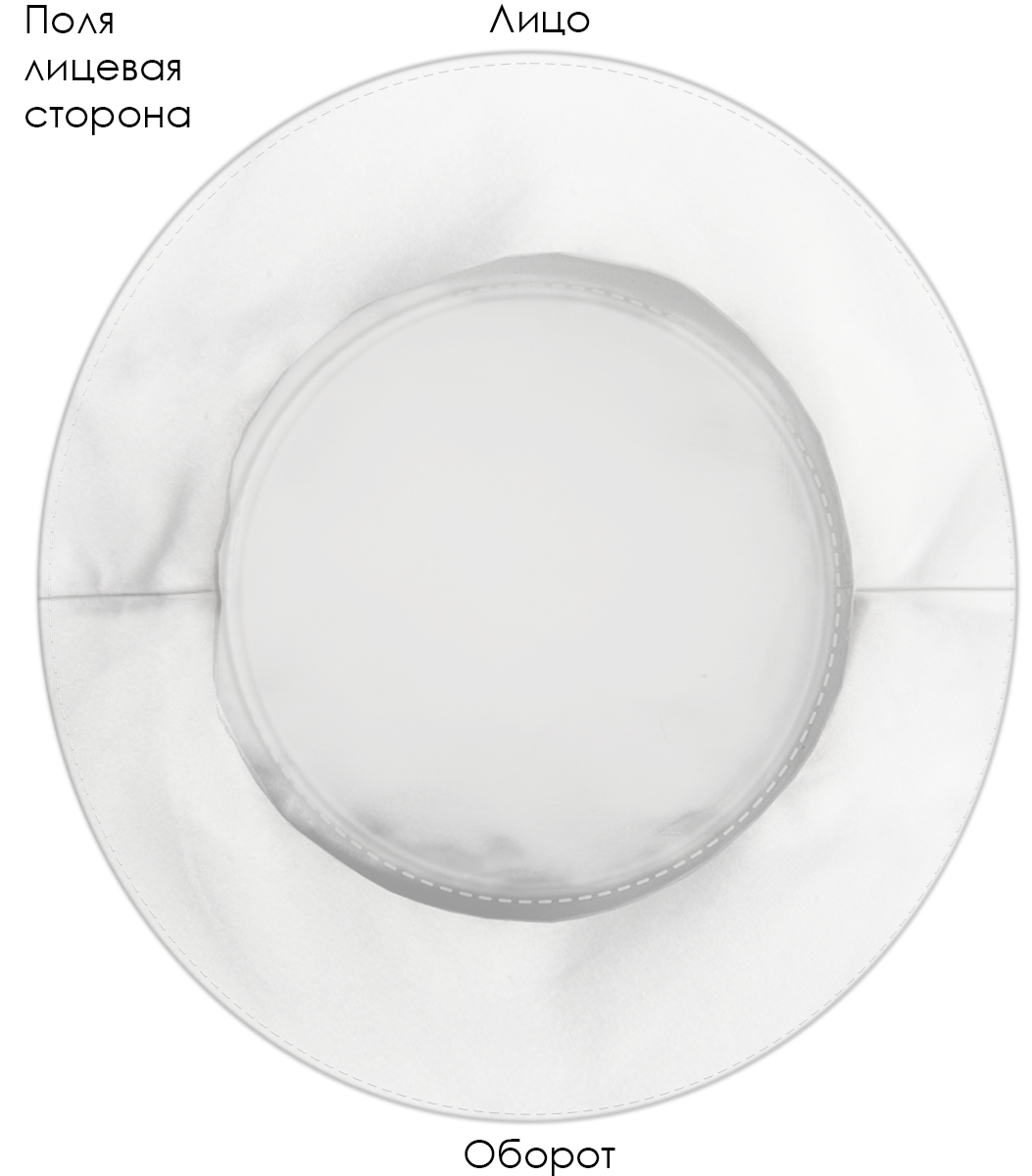 Модель. Панама состоит из семи деталей: дно, 2 тульи, 4 поля (2 верхних, 2 нижних). Поля дублированы специальной подкладкой для удержания формы. Ширина поля 6 см. Панама без подклада.