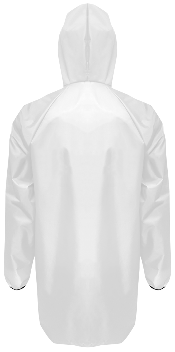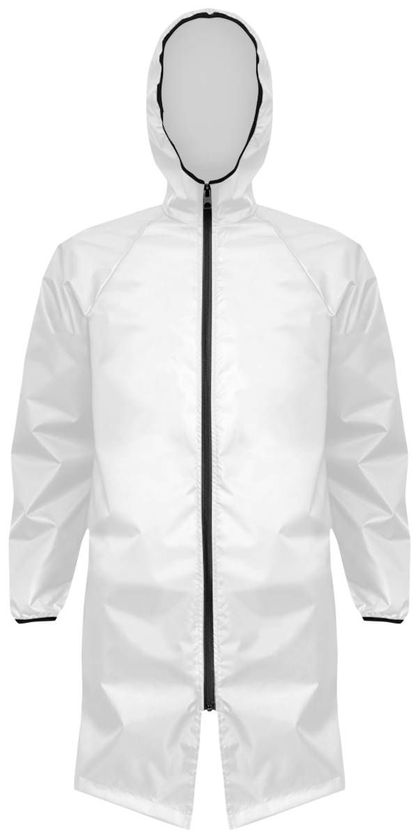Модель. Дождевик прямого силуэта с притачным капюшоном. Застегивается спереди на спиральную молнию. Рукав реглан. Низ у рукава и передний срез капюшона обработаны окантовочной резинкой. Дождевик без карманов.