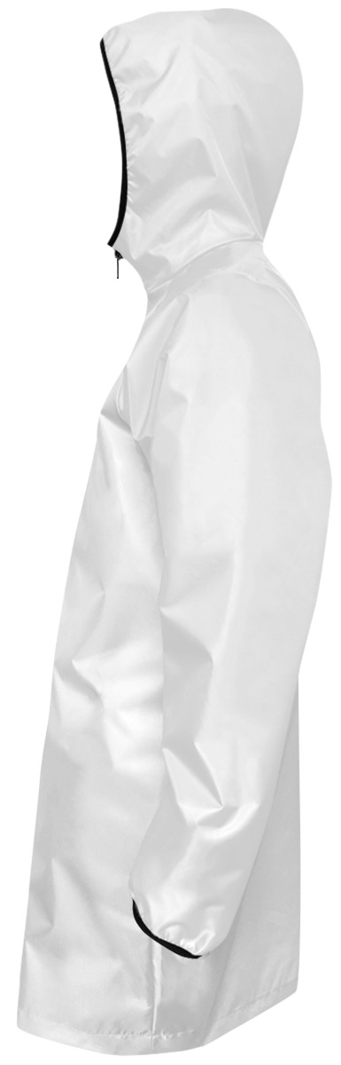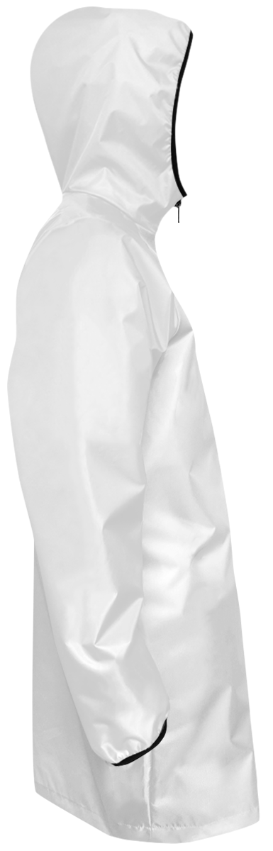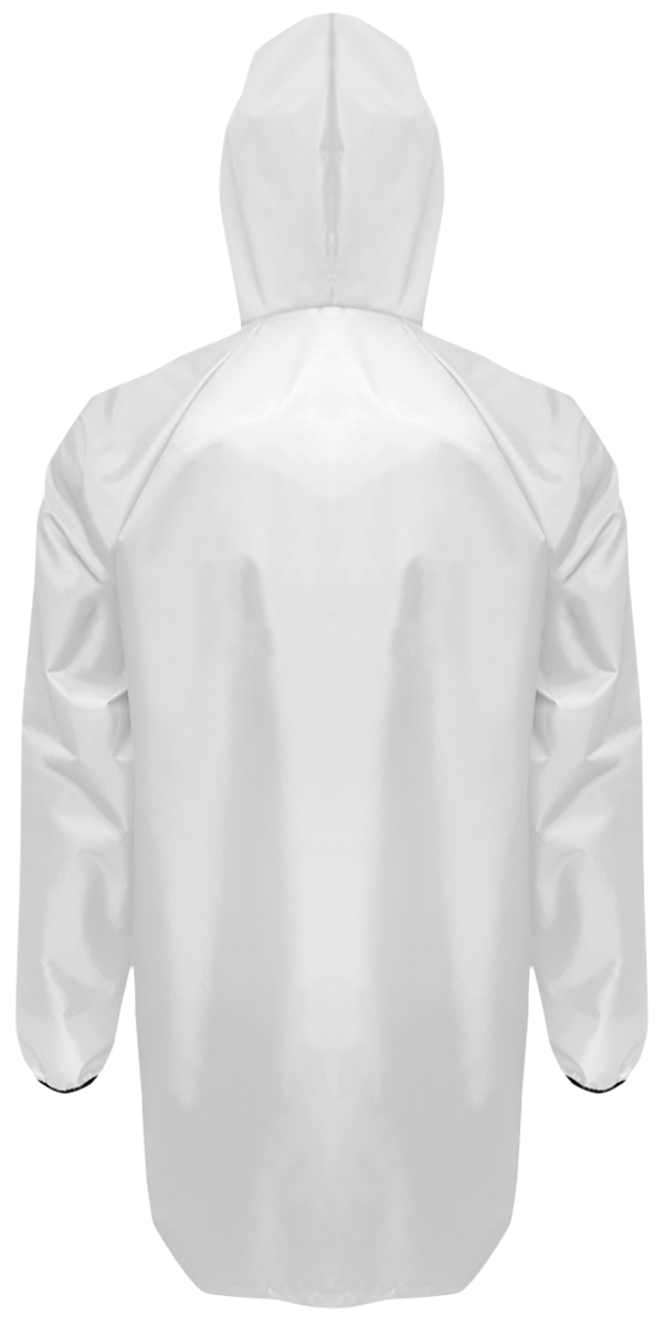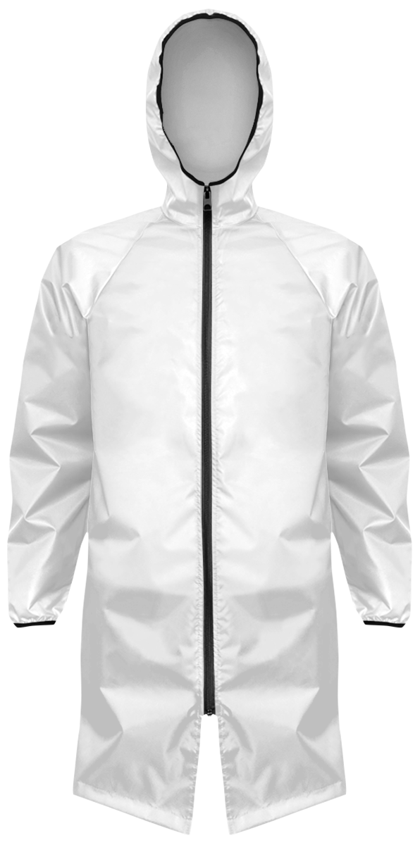 Модель: Дождевик прямого силуэта с притачным капюшоном. Застегивается спереди на спиральную молнию. Рукав реглан. Низ рукава и передний срез капюшона обработаны окантовочной резинкой. Дождевик без карманов.