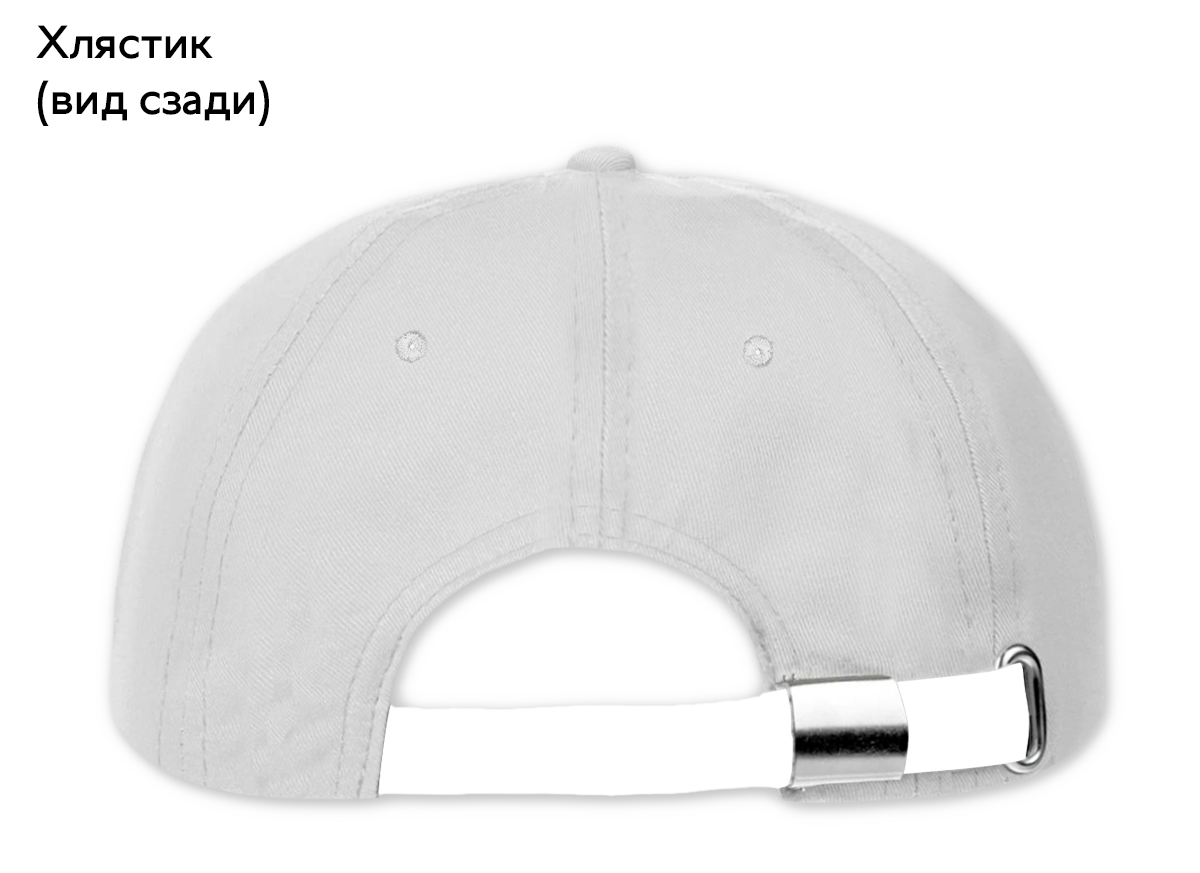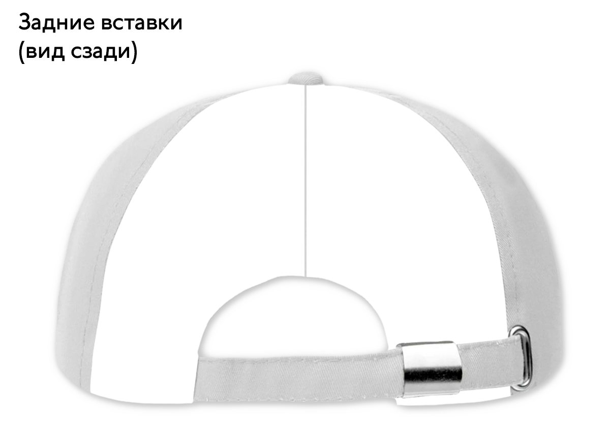 Модель. Купол бейсболки состоит из пяти клиньев с четырьмя вентилируемыми отверстиями по периметру. Металлическая застежка регулирует размер бейсболки.