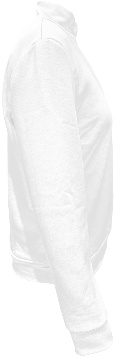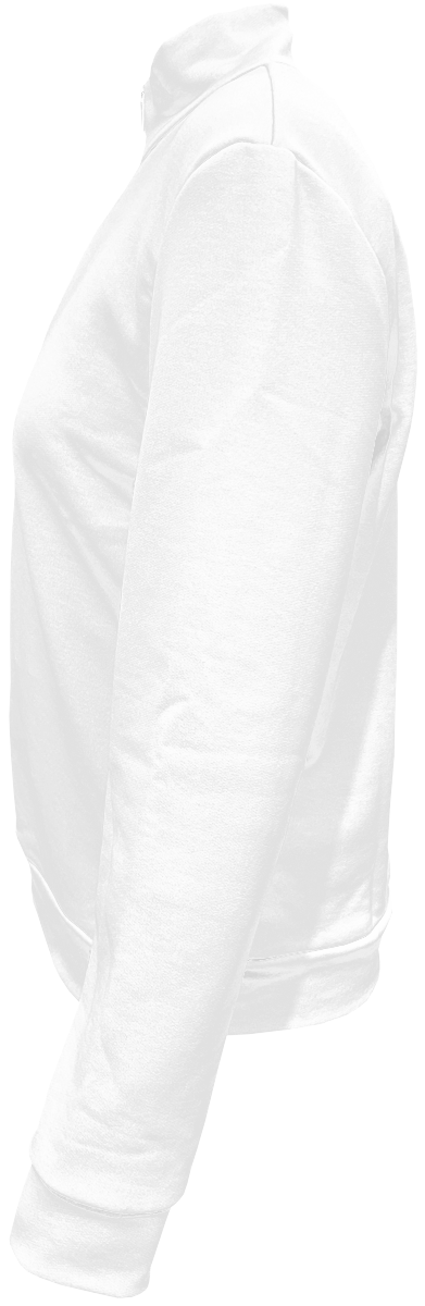 Модель. Толстовка прямого силуэта. Воротник стойка. Молния до груди толстовки. Длинные рукава с манжетой. Толстовка без капюшона. Без карманов. Низ толстовки, манжеты рукавов и горловина выполнены из основной ткани.