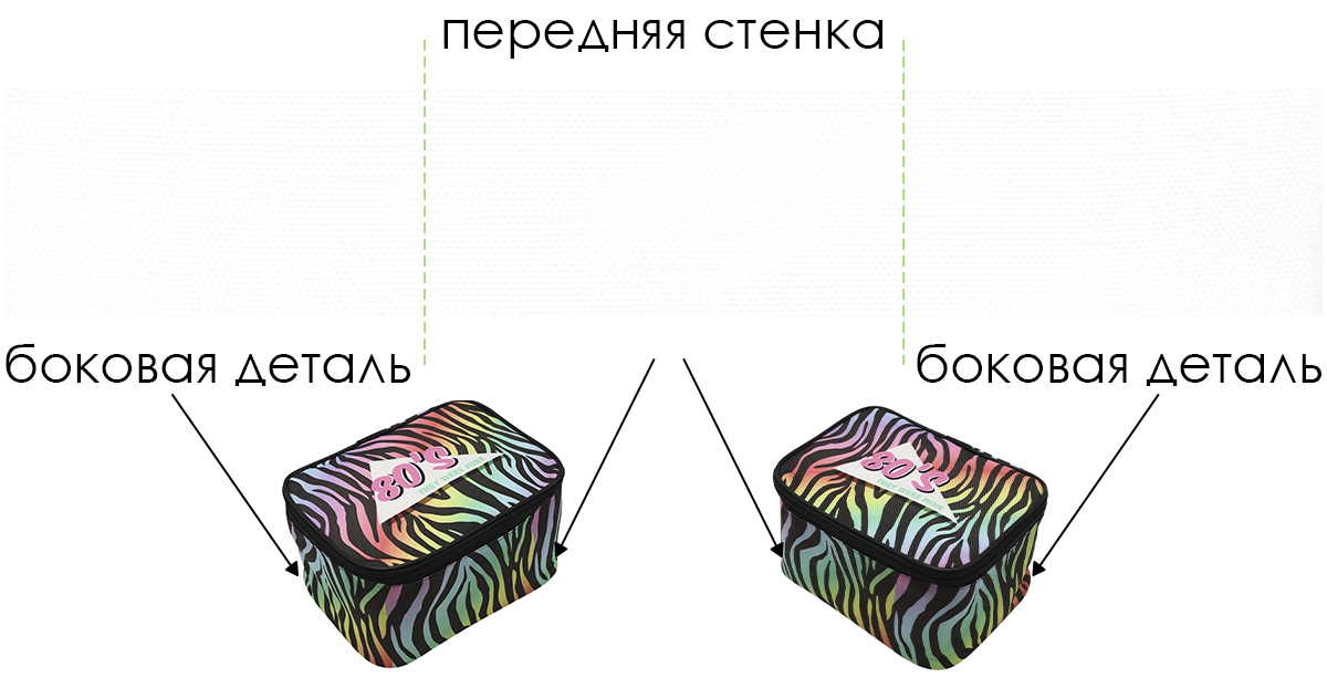 Сублимация. Полноцветная печать осуществляется по всей поверхности косметички. Изображение располагается в соответствии с лекалом. Нанесение входит в стоимость косметички.