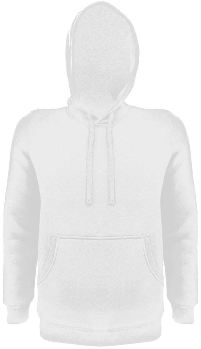 Модель. Прямой силуэт. Толстовка без молнии. Длинные рукава. Низ толстовки и рукавов обработаны тканью кашкорсе (специальная тканая резинка) в цвет толстовки. Один общий карман по типу кенгуру. Капюшон пришивной двухслойный, внутренний слой из однотонной кулирной глади с лайкрой стандартных цветов на выбор. У края капюшона продет плоский шнур стандартных цветов.