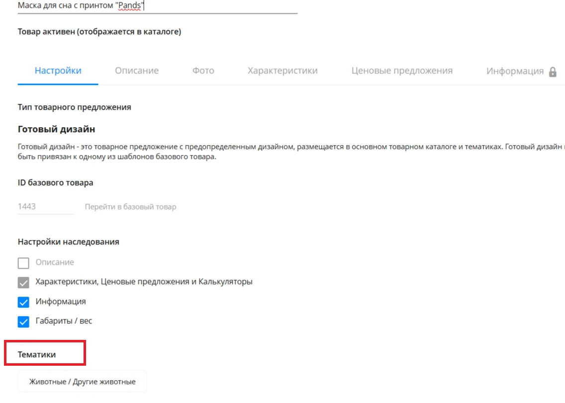 - можно промаркировать Тематикой. Тогда товар появится в отдельной структуре каталога Тематики товара.